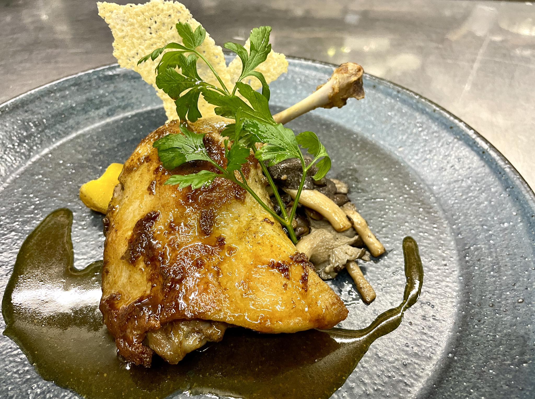 | 骨付き鴨のコンフィ オレンジビネガーカラメルソース¥2800 |