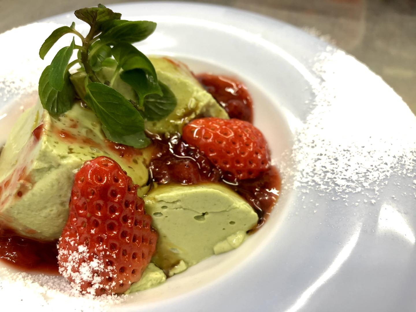 | 抹茶風味のパンナコッタ 黒蜜がけ ¥650 |