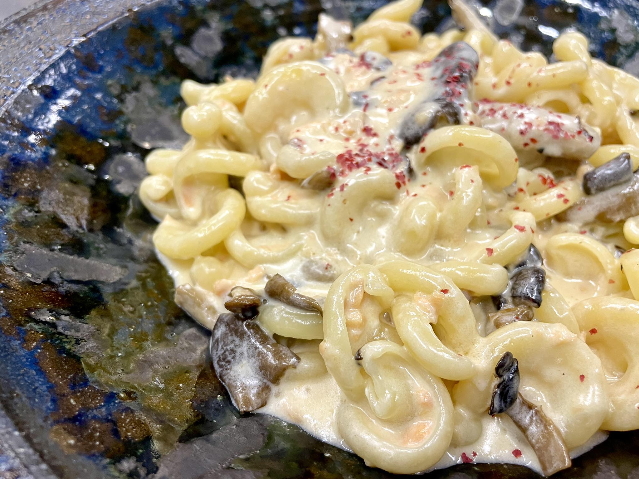 | 燻した鮭と平茸のクリームソース ショートパスタ ¥1760 |