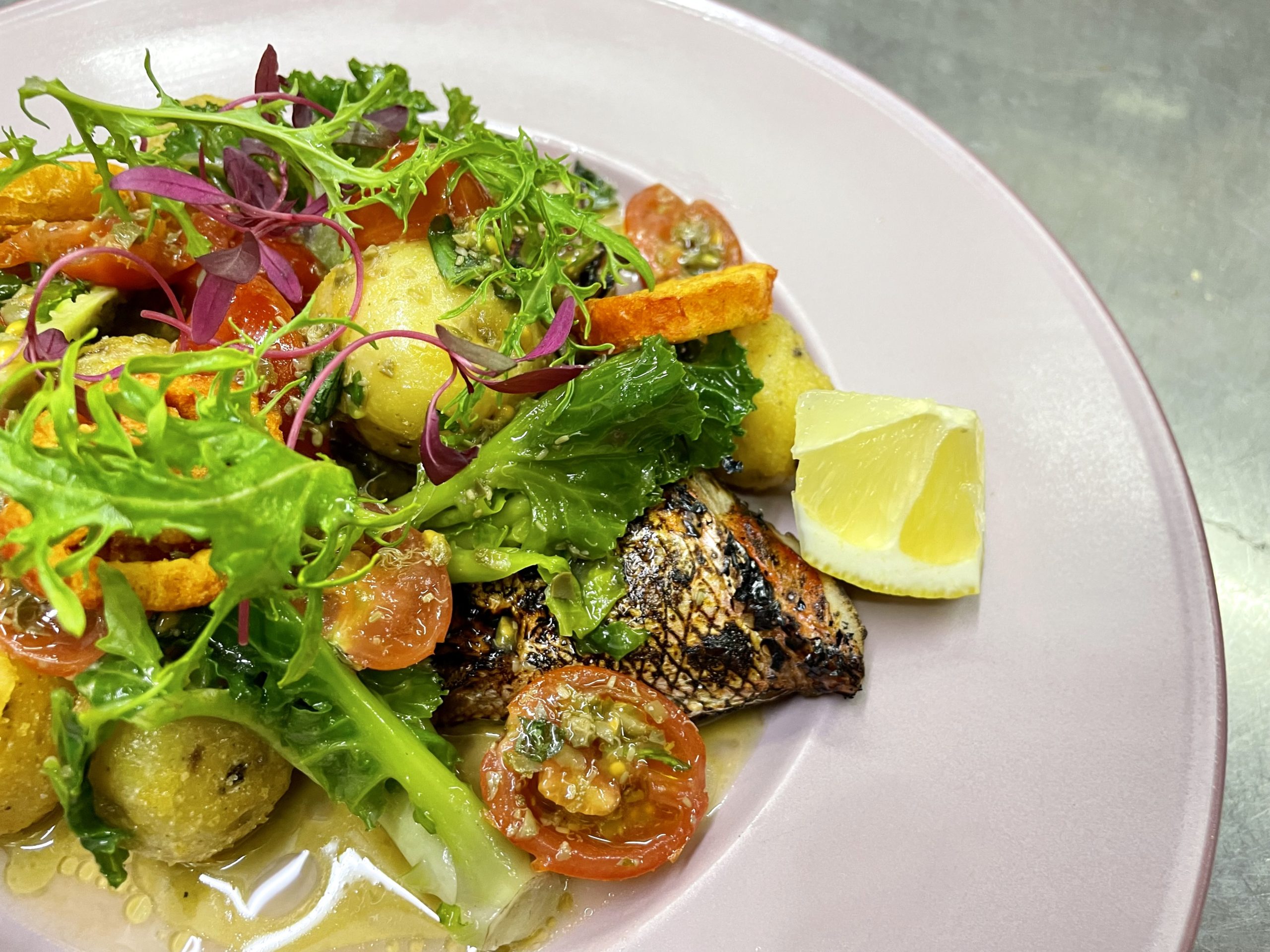 お料理の付け合わせは入荷状況により変わります。お皿も何度もお召し上がりのお客様には変えたり、店主も楽しみながら盛り付けております♪