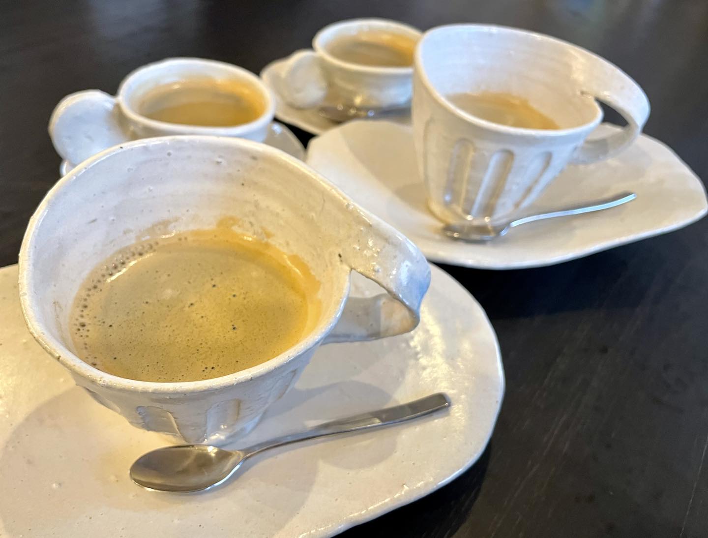で集めたカップをアットランダムに使ってお出ししております^ ^ 食後のお供のドルチェもプラス250円で2種盛りに変更出来ます。ご用命下さいませ