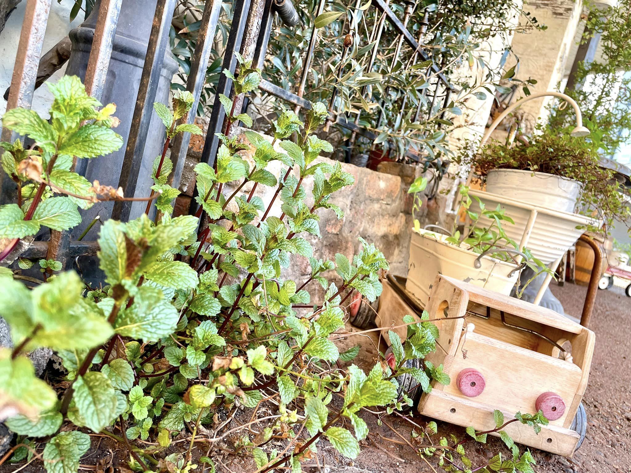良いお天気ですね〜♪店の前、植え込みのミントもすくすく新芽が伸びております^^