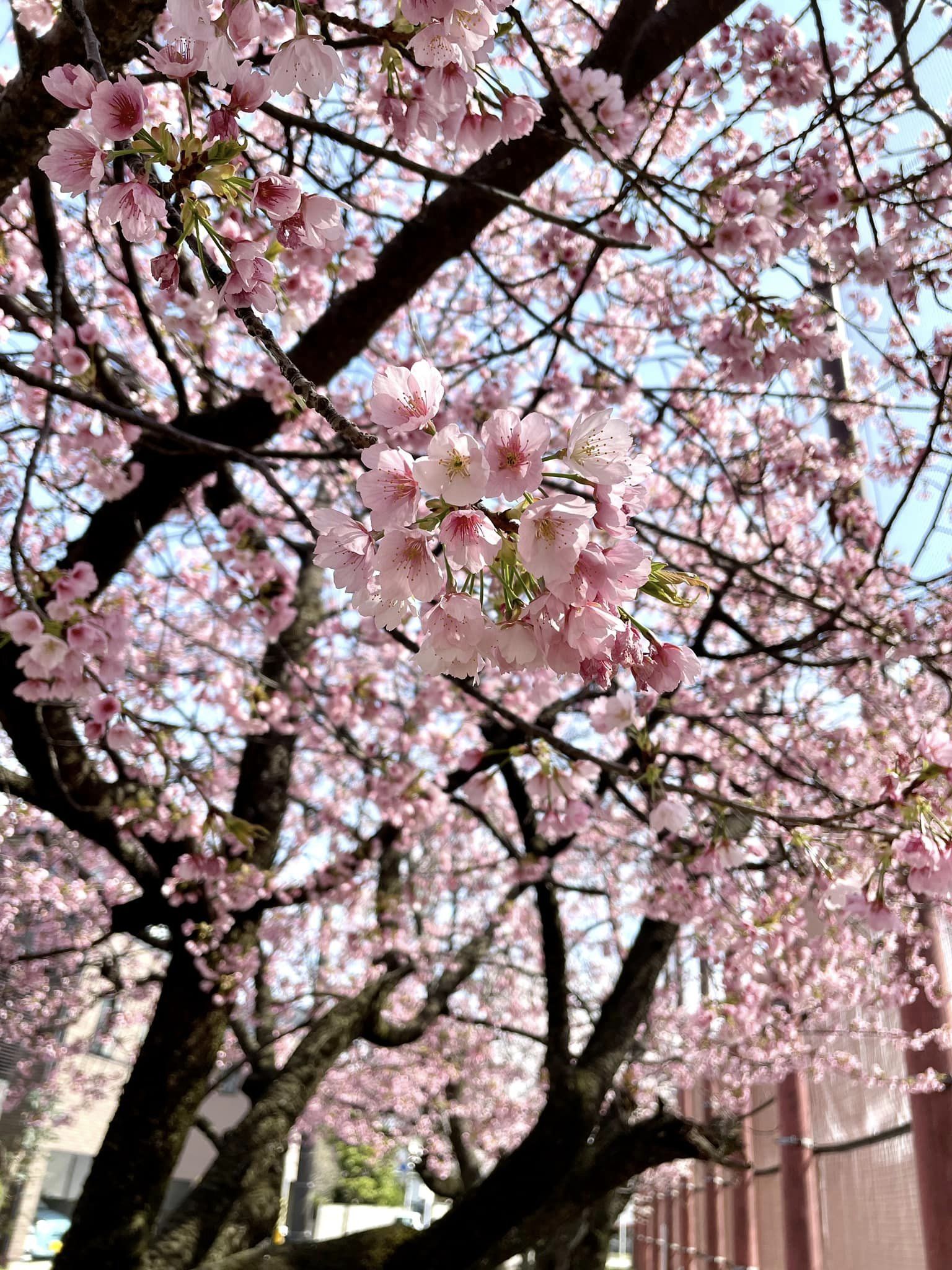 駐車場前、万代長峰小学校グランド脇の桜も綺麗に咲き誇っております。春ですね~✨
